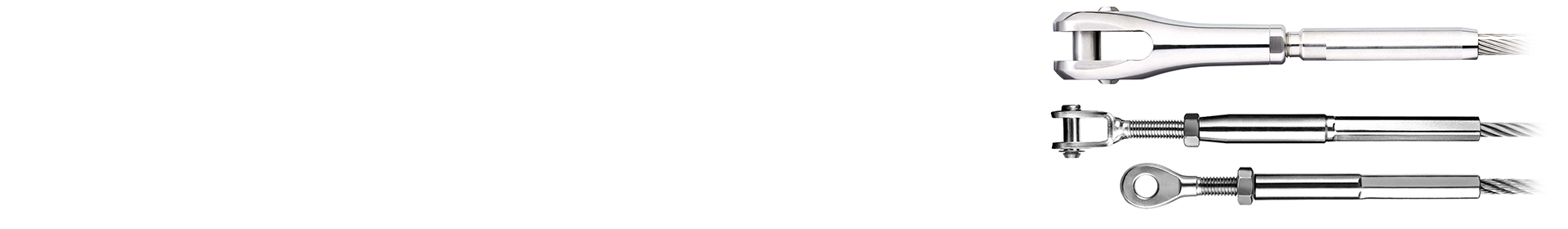 Napínák s vidlicí a samosvornou koncovkou z nerezové oceli AISI 316 pro pevné spojení lan.